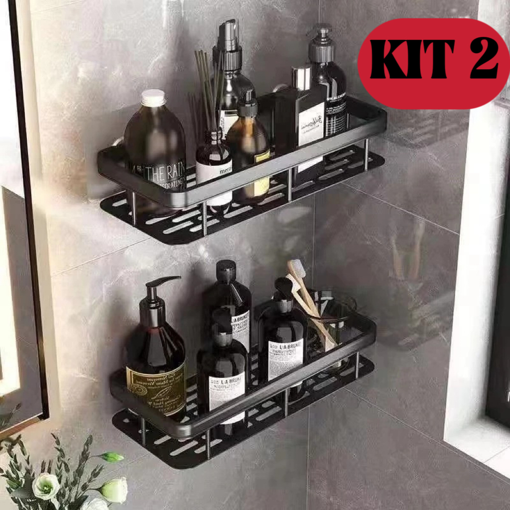 Kit 2 Suporte Prateleiras Organizador de Shampoo Com Adesivo Sem Furo Na Parede