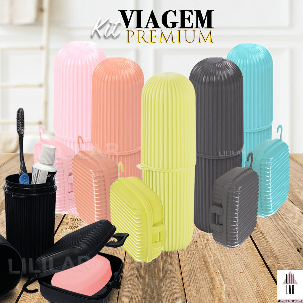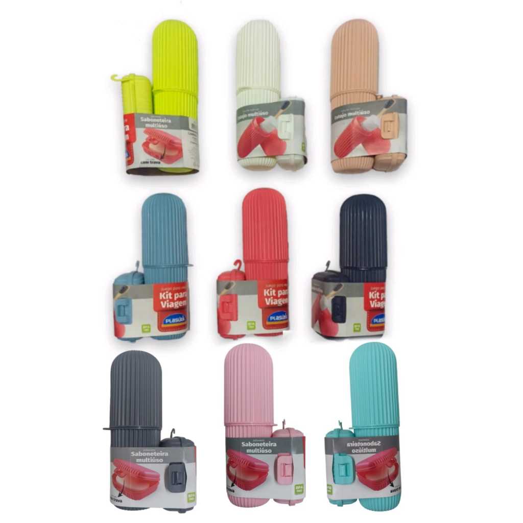 Kit Porta Escova de Dente Multiuso e Saboneteira Multiuso Para Viagem Plasútil