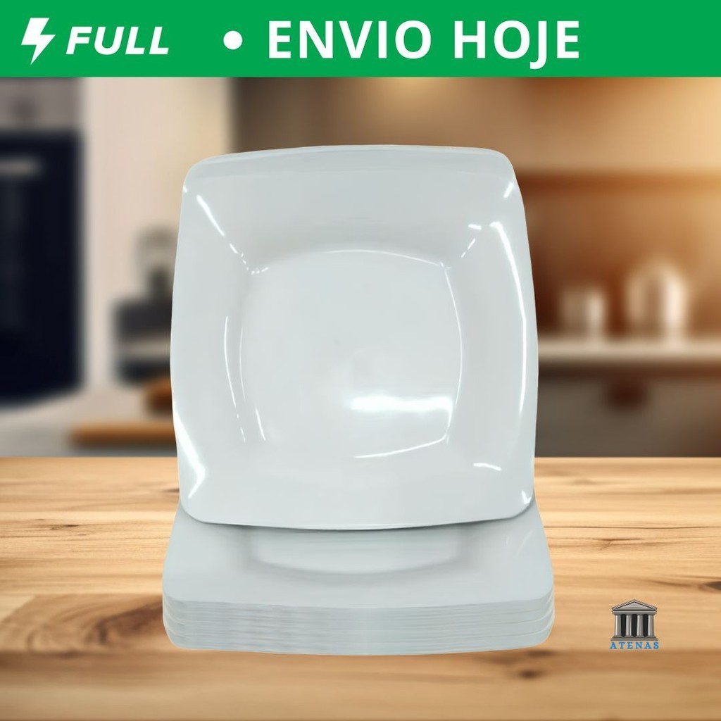Kit 50 Prato Raso com Borda Branco Refeição Churrasco Festa Pratos Plastico Quadrado Branco Preto