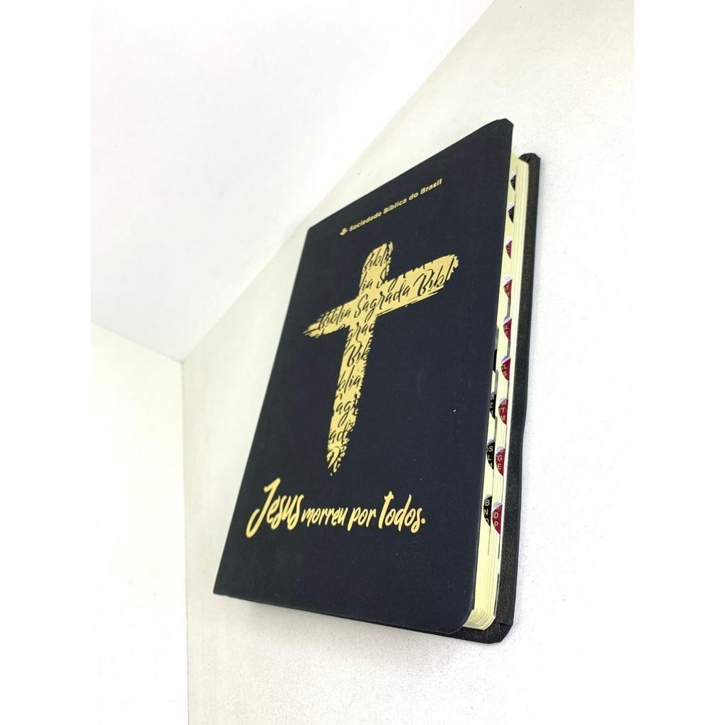Bíblia Sagrada Jesus Morreu Por Todos Linha Ouro Almeida Revista E Atualizada Capa Preta Com Índice