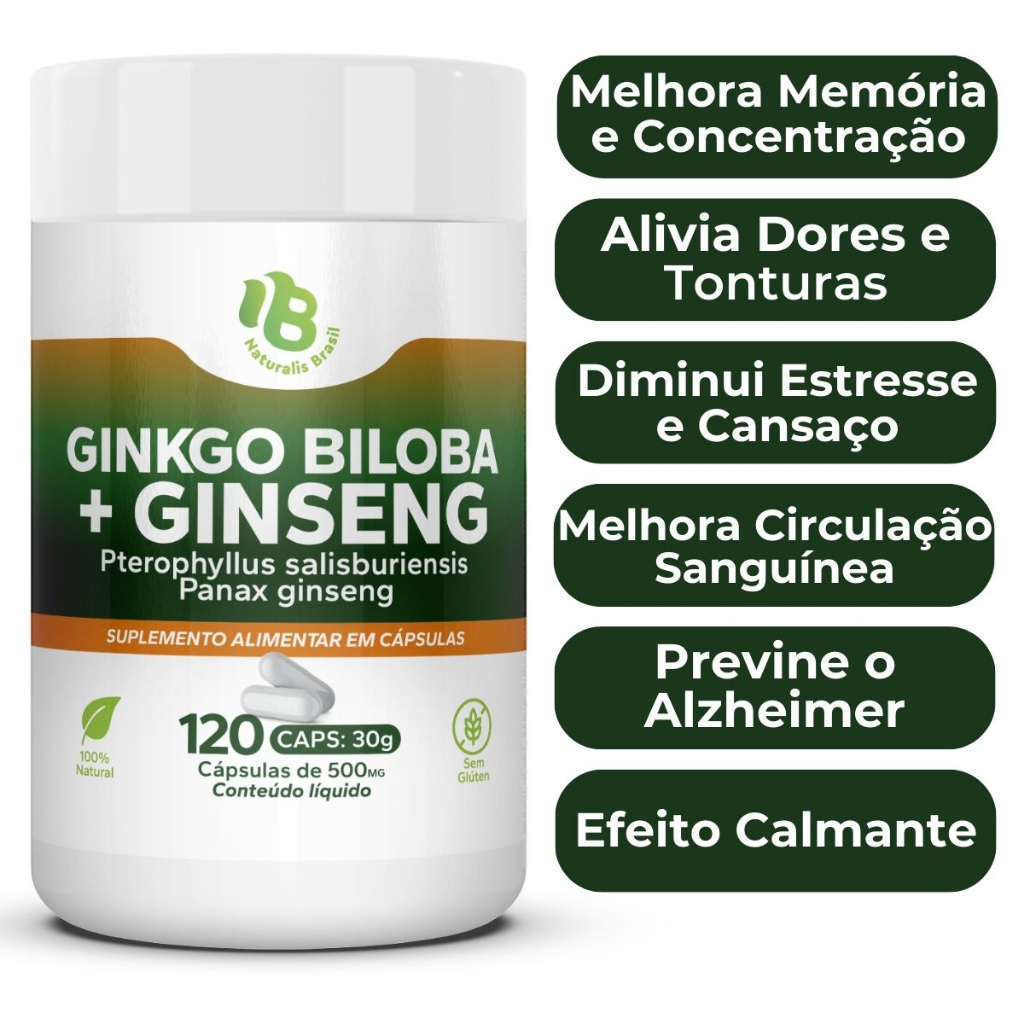 Legítimo Ginkgo Biloba com Ginseng 120 Cápsulas 500mg