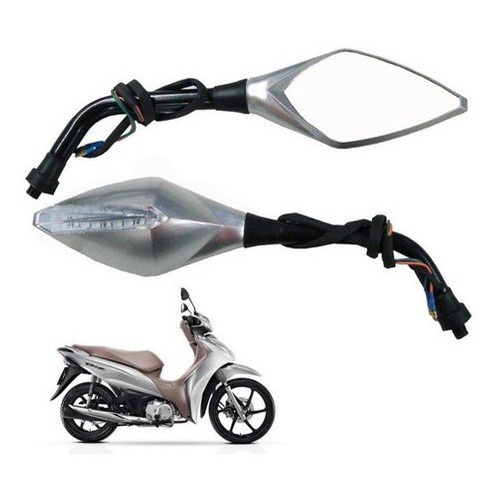 Espelho Retrovisor Esportivo Com Led Biz 100-110-125 Prata