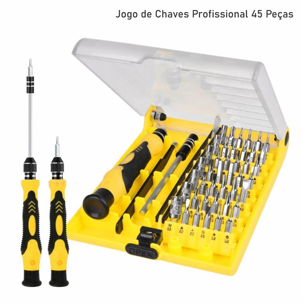 Kit Chaves de Precisão 45 Peças Imantadas - Abre iPhone e Android - COMPLETO