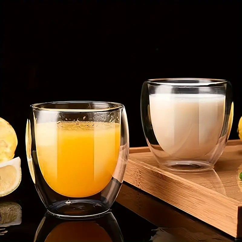 Conjunto 2 Copos Parede Dupla de Vidro 250 ml para Café Chá Suco Cerveja Chopp Copo Duplo Isolante KIT 2 Copos