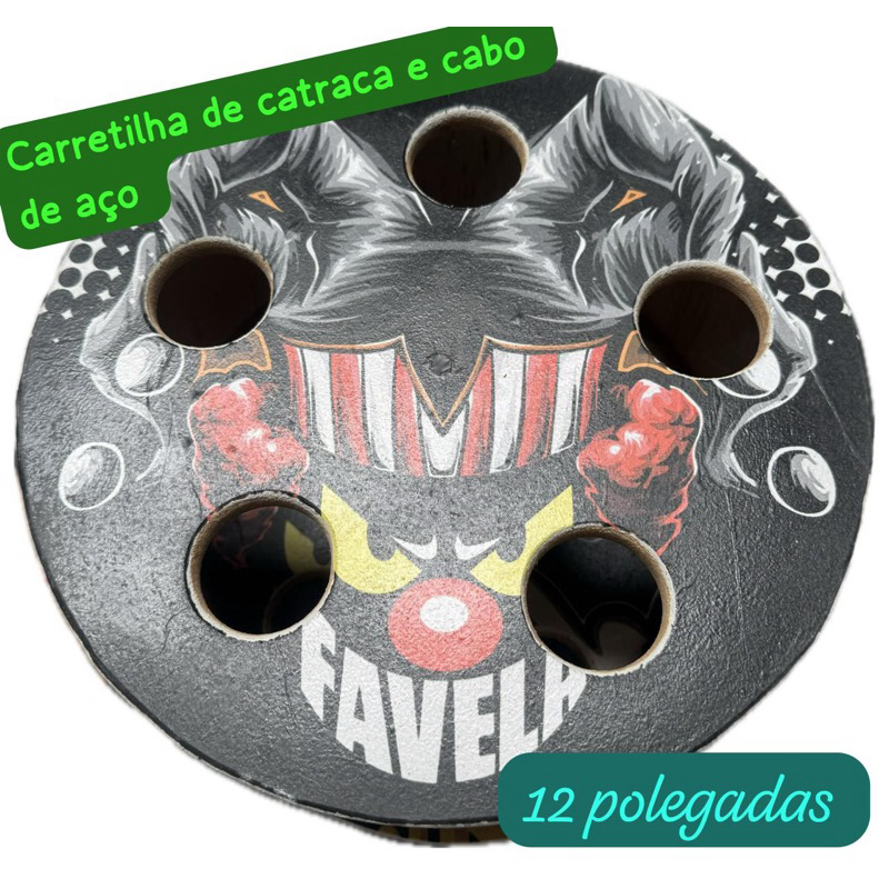 Carretilha com rolamento para linha de pipa madeira 30cm 12 Polegadas pintada e adesivo frontal