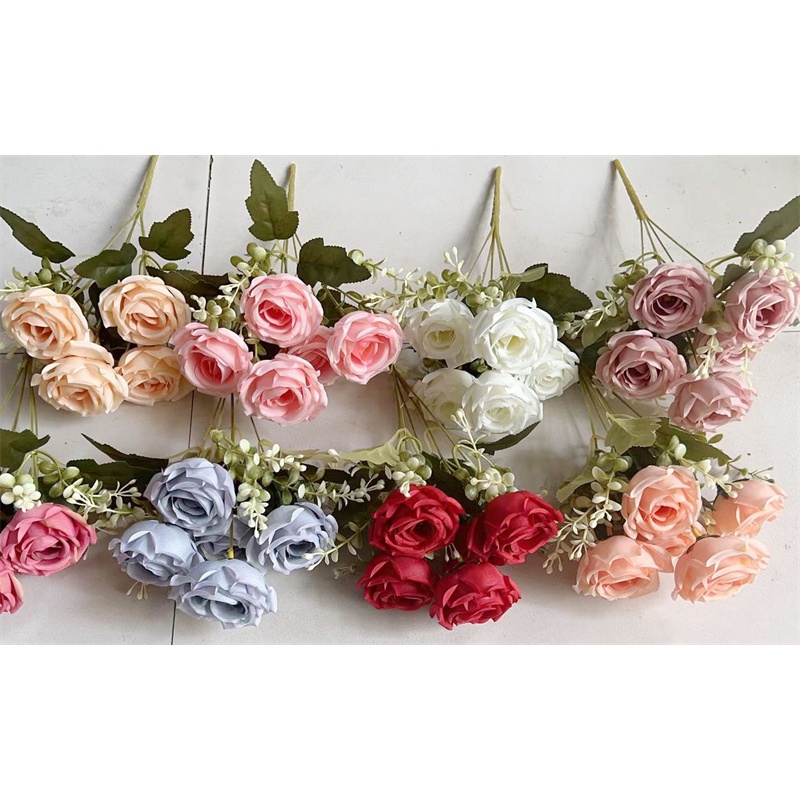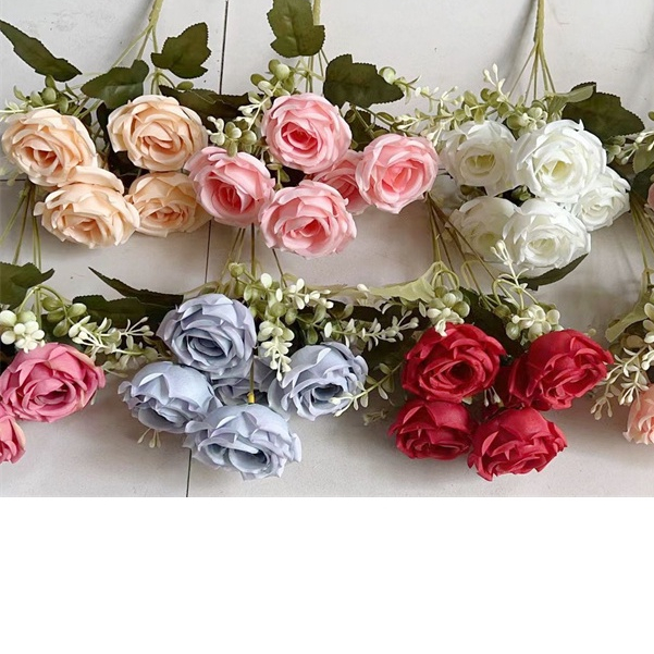 Decoração para casa de um galho com 4 rosas bifurcadas --0051 (É mais favorável comprar os pacotes)