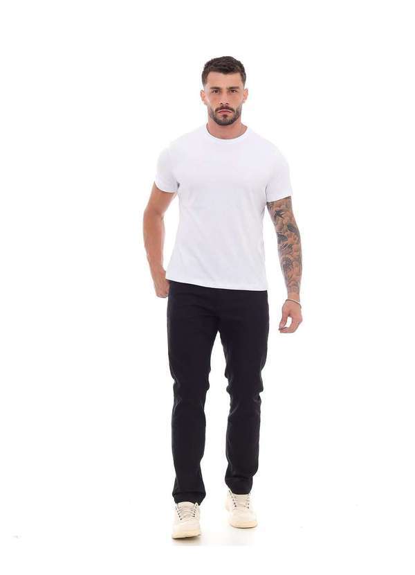 Consciência - Calca Sarja Masculina Slim Fit Basica Preta com Elastano Preto