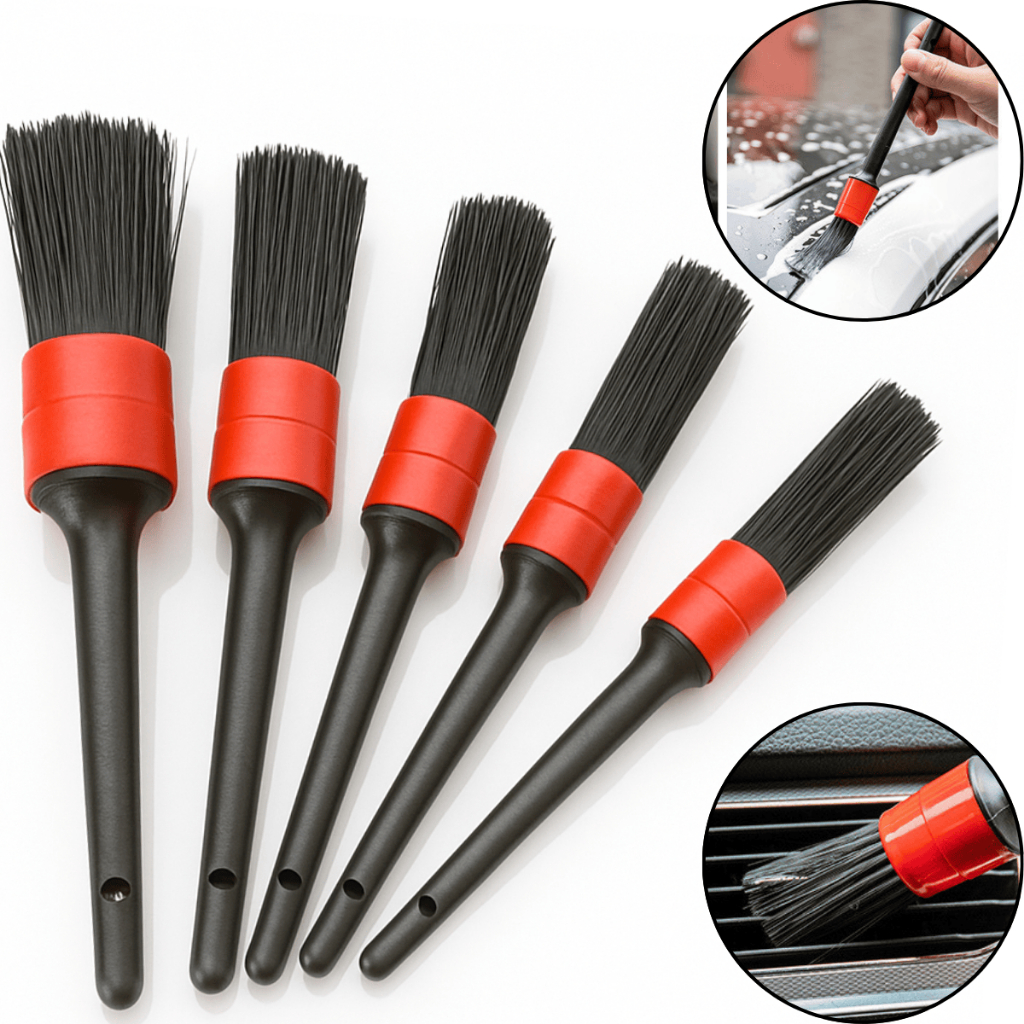 Kit 5 Peças Pincel De Detalhamento Automotivo Limpeza Automotiva De Carro Interno Externo Escova Multifuncional