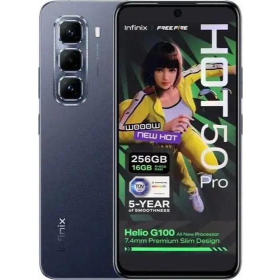 Smartphone Infinix HOT 50 Pro 256GB, 16GB (8+8) RAM, Tela 6,78” 120Hz, NFC, Preto