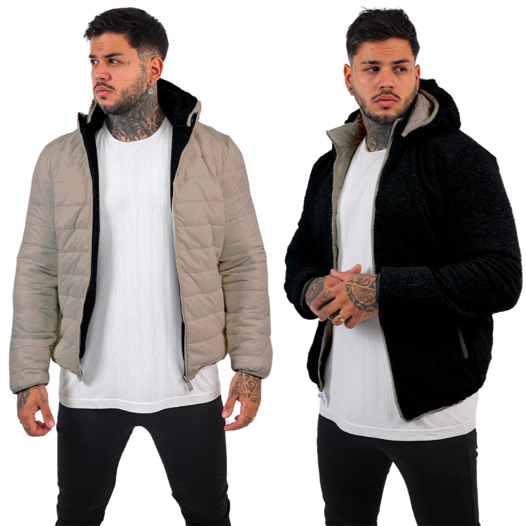 Jaqueta Puffer Masculina Dupla Face Casaco Masculino Com Moletom Com Touca Removível Bobojaco Frio Cores Tamanho Plus Size e Regular Do M ao G3