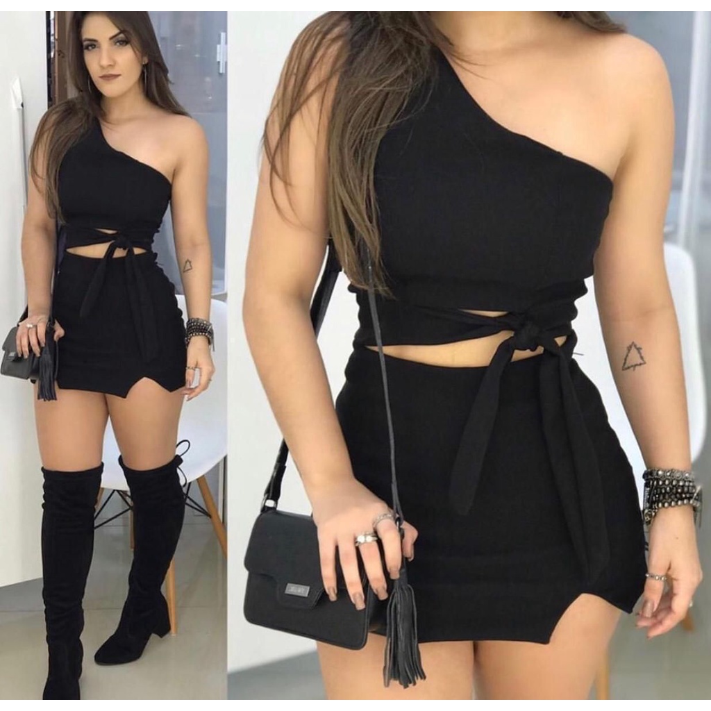 Conjunto Saia Midi com cropped manga longa super tendencia e conforto total.