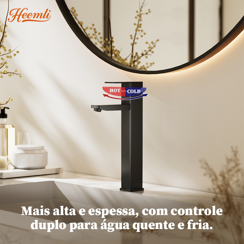 Heemli torneira banheiro inox monocomando Lavabo Saída Alta para Cuba Quadrado Pintura Preta Ajuste Água Quente Fria