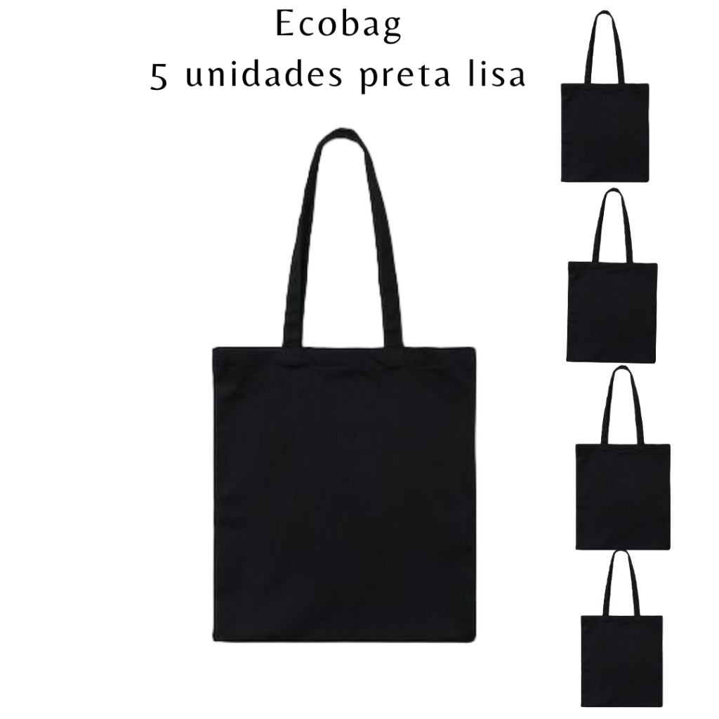 Kit 5 sacolas ecobag preta 40x40 Lisa 100% Algodão