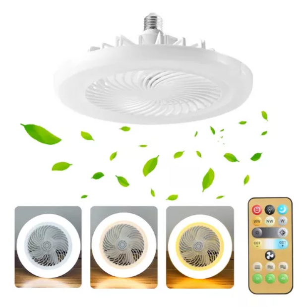 Ventilador de teto com controle remoto e lâmpada de led com 3 cores bivolt