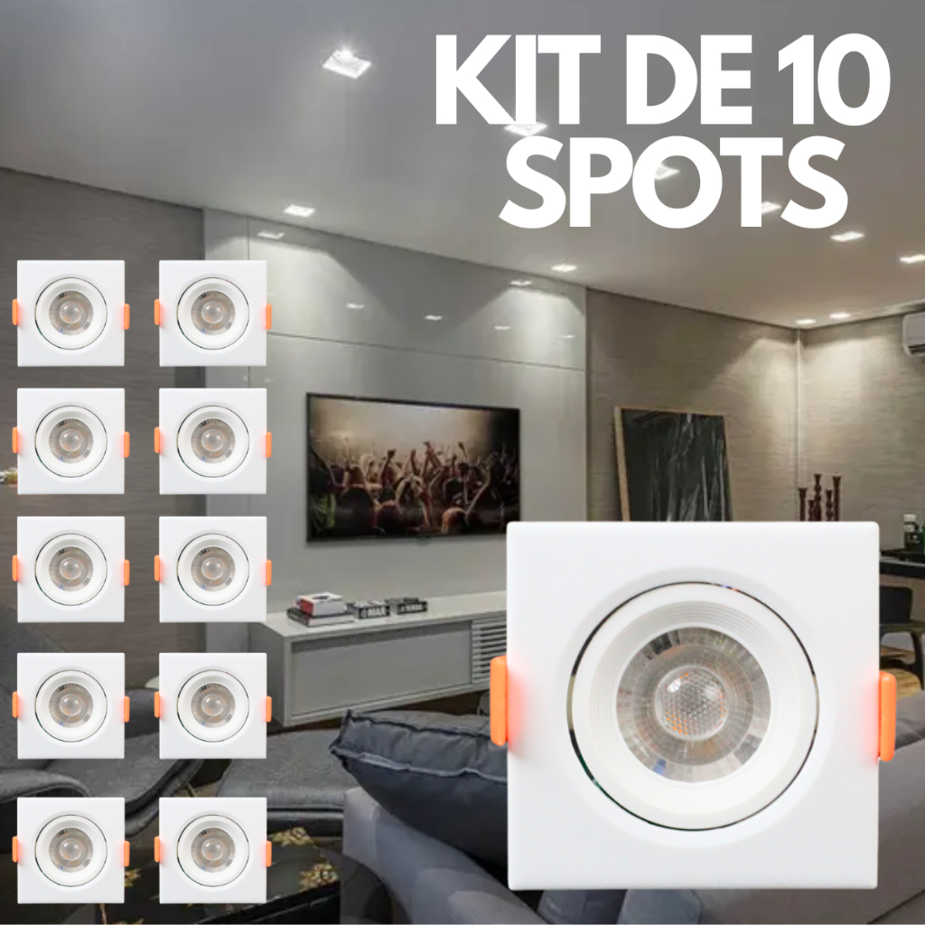 Kit 10 Spots LED 7W 5W 3W Embutir Redonda Quadrada Direcionável Iluminação Sanca Ambiente 10x Spot