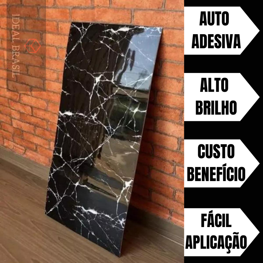 Kit com 10 Placas Adesivas 80x40 3,2m2 Mármore 3d Auto Colante para Decoração de Parede Alto Brilho