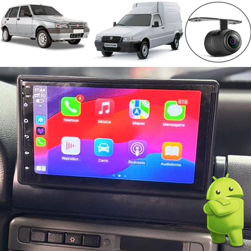 Central Multimídia Android Auto Carplay Moldura 9 Pol Bluetooth Wifi Gps p/ Fiat Uno Mille Fiorino