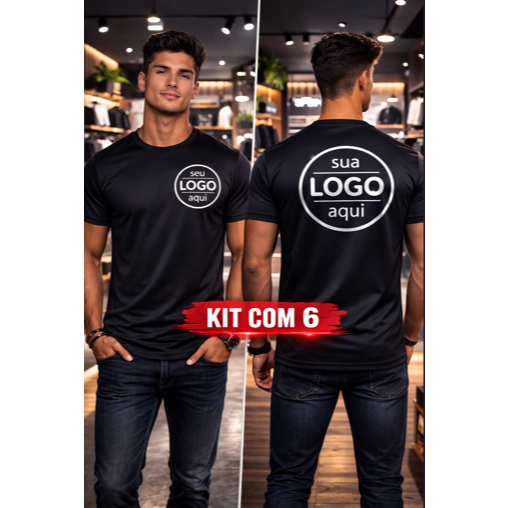 Kit 6 Camisetas Dry Fit Personalizadas com Sua Logo Unissex Ideal para Empresas