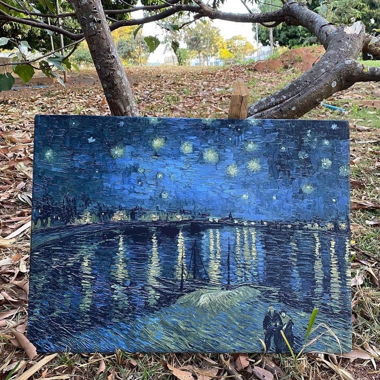 Quadro decorativo Van Gogh Noite estrelada Sobre Ródano tela acetinada