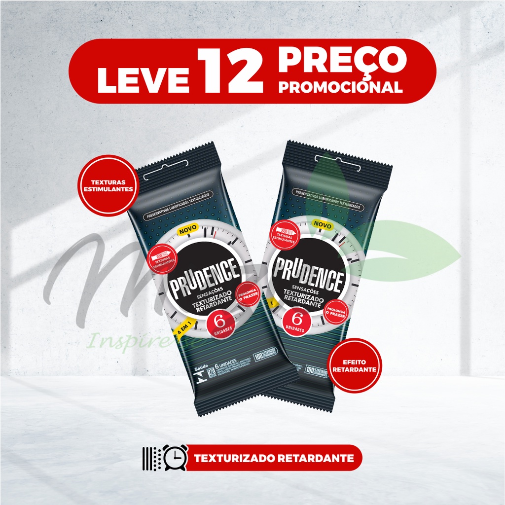 Kit 12 Preservativos Camisinha Sensações Texturizado Retardante c/ 6 Prudence.