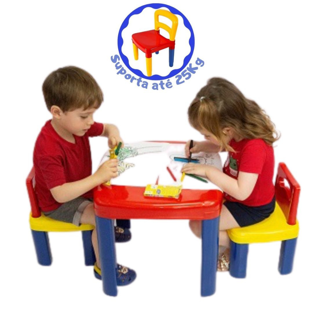 Kit Mesinha Didática E Educativa Infantil Com 2 Cadeiras - Suporta Até 25kg