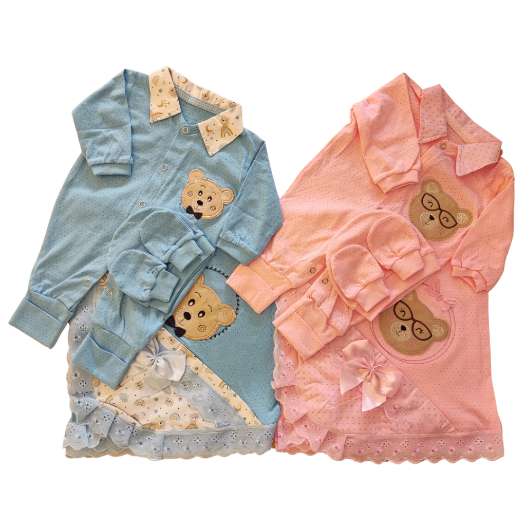 Saída Maternidade Para Bebê Algodão 4 Peças Para Menina e Menino