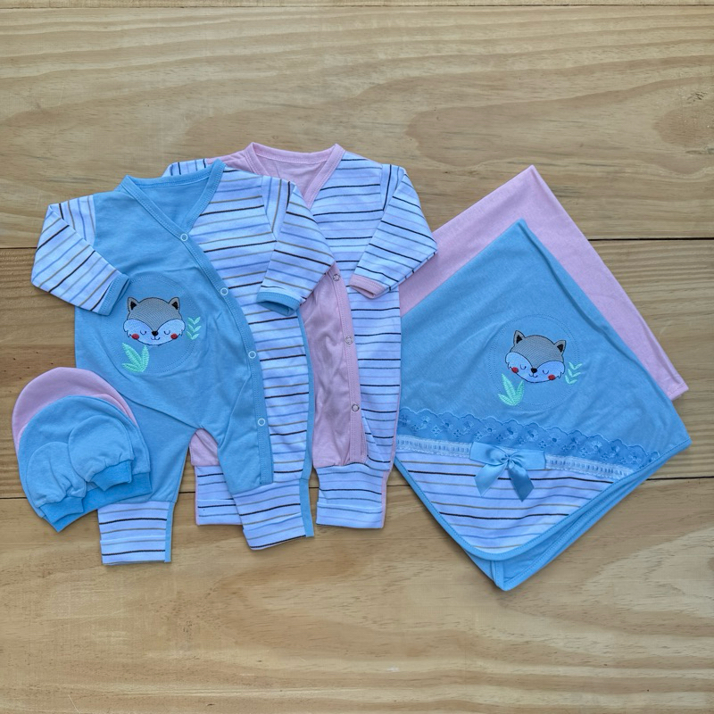 Saída de Maternidade Menino e Menina 5 Peças Para Bebê Recém Nascido, Malha Hipoalergênico 100% Algodão.