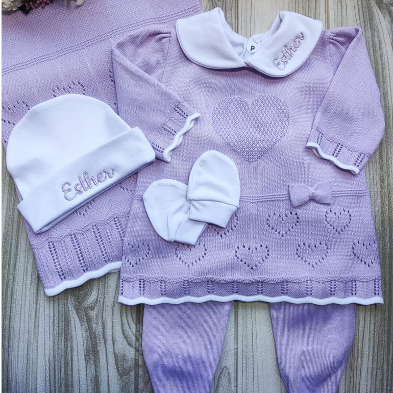 Saída De Maternidade Para Bebê Menina e Menino 100% Algodão 4 Peças com Aplique e Bordado