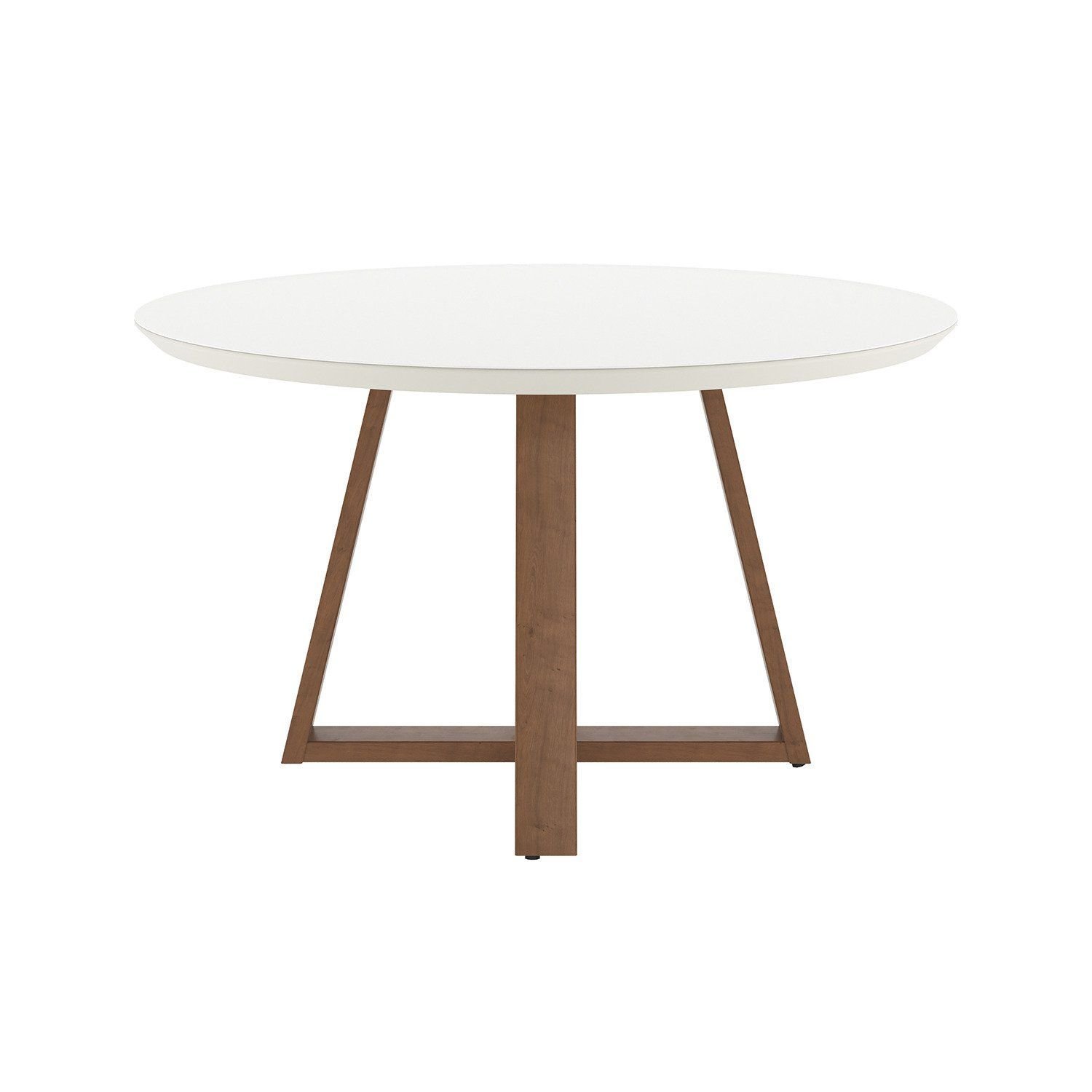 mesa de jantar redonda com tampo de vidro isabela off white e ype 120 cm - Marrom
