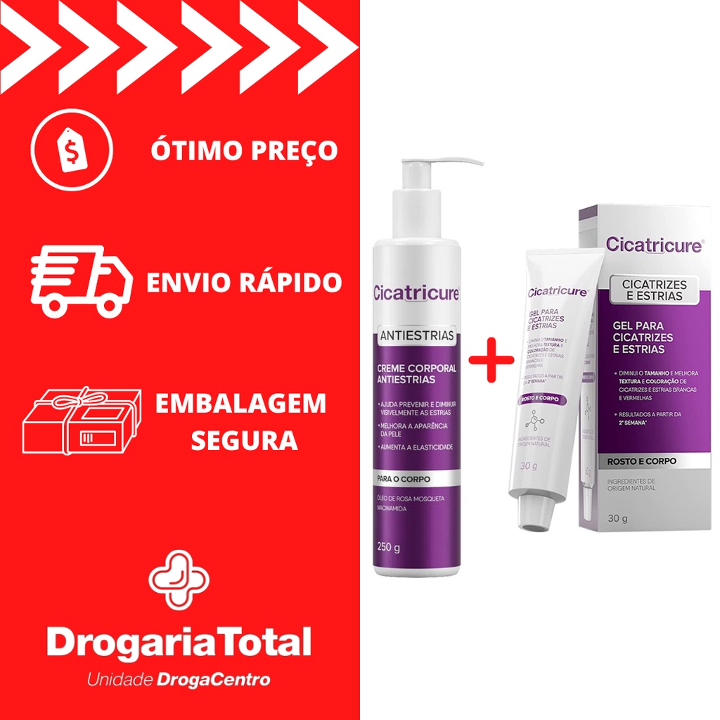 Kit Cicatrizes Estrias Cicatricure Gel 60g e Hidratante Corpo Antiestrias 250g