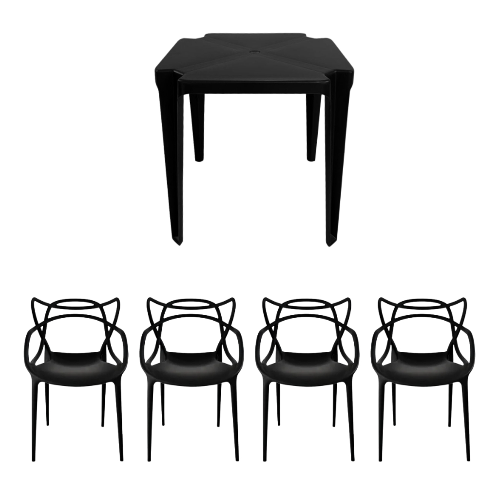 Kit 1 Mesa De Plástico Quadrada + Kit 4 Cadeiras Allegra Jantar Restaurante Bar