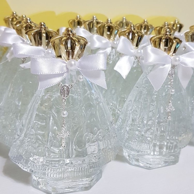 Frasco com o formato da imagem de Nossa Senhora Aparecida lembrança batizado batismo lembrancinha lembrancinhas lembranças