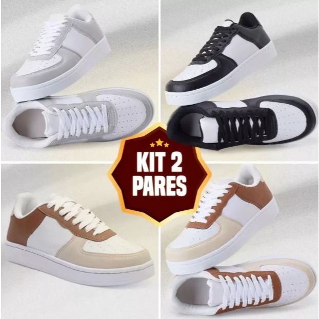 Kit 2 Pares Tênis Masculino Couro Costurado Social Confortável para o Dia a Dia Leve e Macio 34 a 43