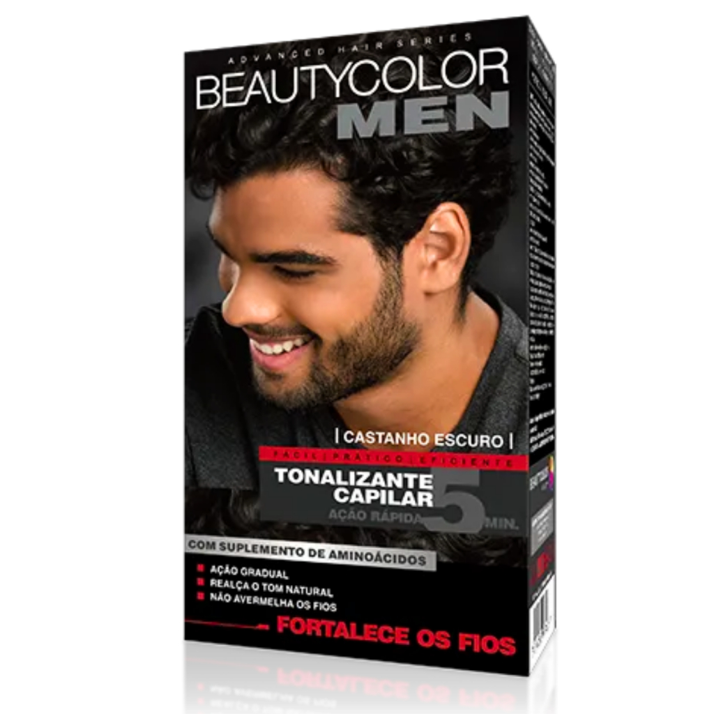 Kit Tonalizante Masculino Beautycolor Men Sem Amonia Castanho Escuro Coloração Ação Rapida