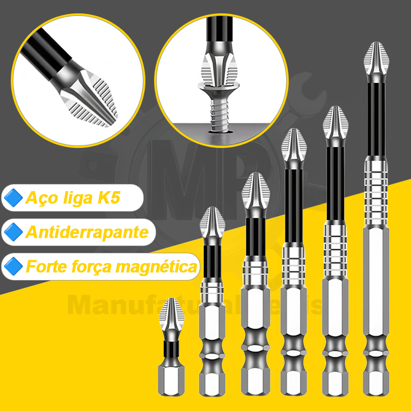 Kit 6 Bits Cruzado Magnéticos PH2 de Impacto Anti Derrapante Encaixe Preciso Anti choque Philips
