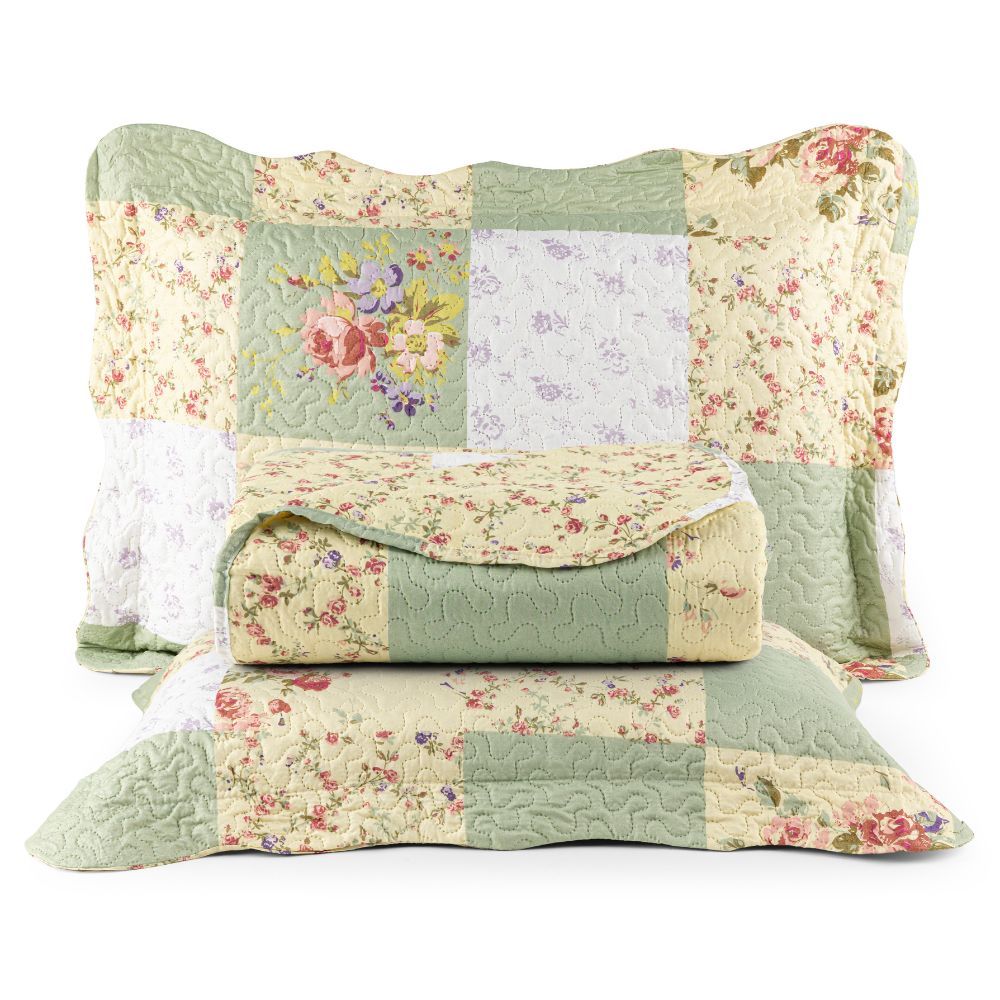 Kit Colcha Cobre Leito King 3 Peças Matelado Dupla Face Bouti Patchwork