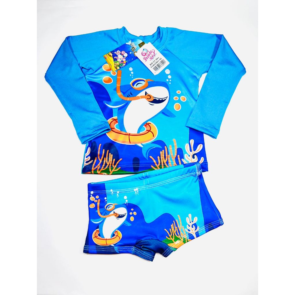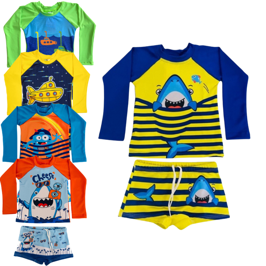 Conjunto Sunga Infantil Tubarão + Blusa com Proteção Solar Bebê e Infantil Proteção contra o sol Para criança Kit Praia