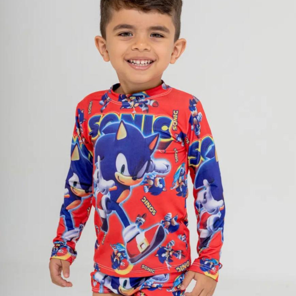 Kit Conjunto UV Infantil menino Sunga e Camisa Proteção Solar Roupa de Praia