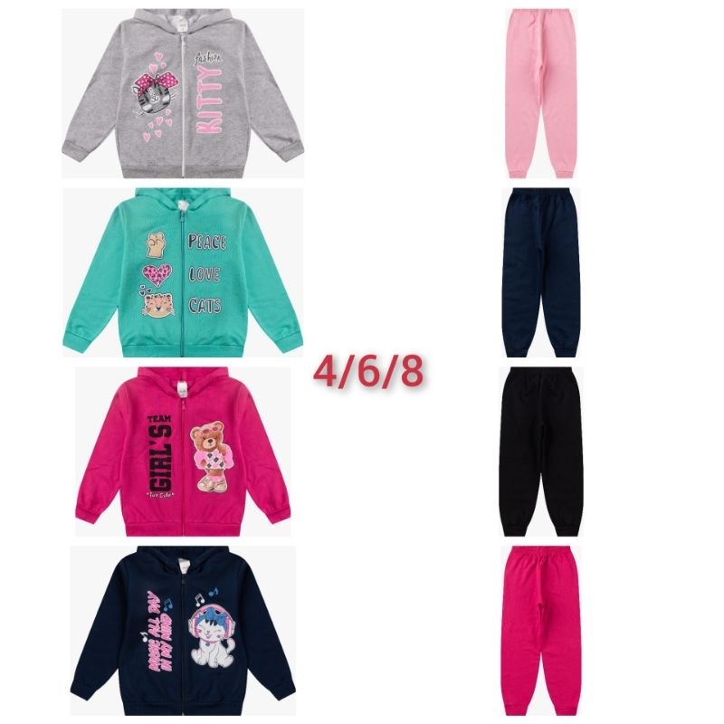 Kit 2 Conjuntos jaqueta com capuz e zíper estampado calça de moletom.