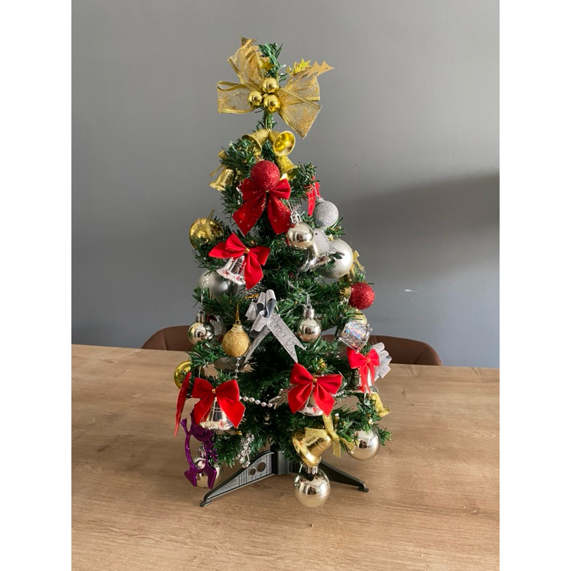 Árvore De Natal 60cm + 36 Enfeites Decorada Pequena De Mesa Escritório NEVADA ou VERDE