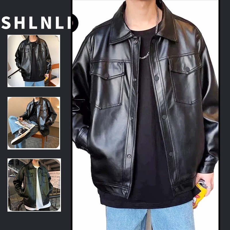 Americano Retro Jaqueta de Couro Puffiana com Lapela Solta para Homens, Moda de Rua para Primavera e Outono, Motocicleta