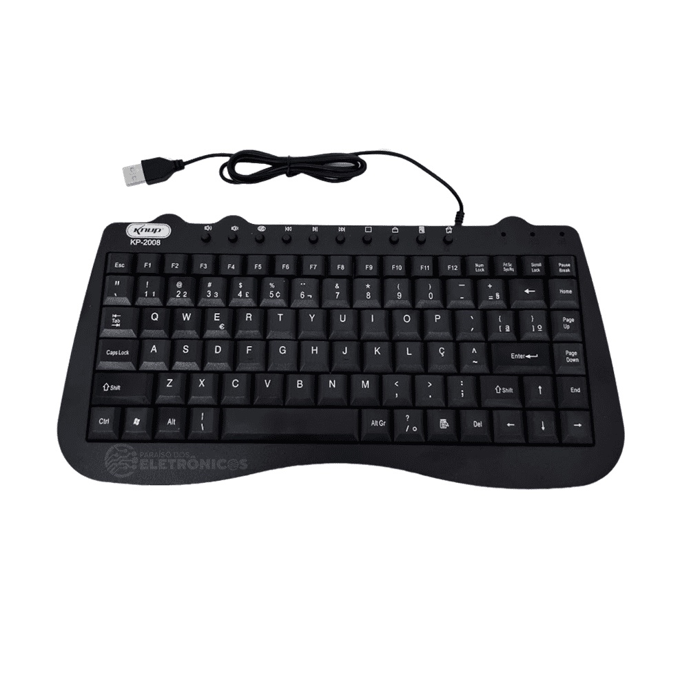 Teclado Multimídia Standard Com Fio Design Ergonômico Teclas Silenciosas KP2008