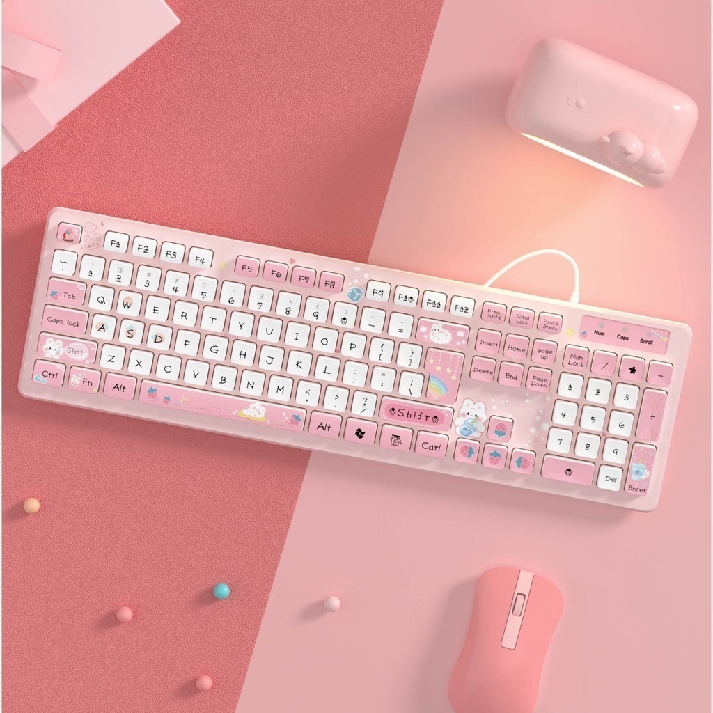Teclado USB Com Fio Fofo Coelho Silencioso 104 Teclas Design Ergonômico Jogo De Computador Mecânico Para Notebook Desktop PC Pink