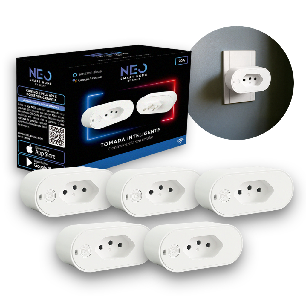 Kit 1 ou 5 Tomada Inteligente Wi-fi 2.4 GHz 110v/220v Bivolt Branco Cod: 291990617 Neo Avant