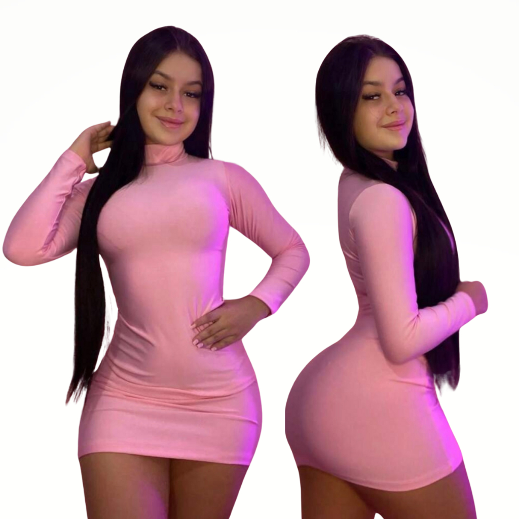 Vestido Feminino Gola Alta manga longa Curto Suplex inverno RF 055