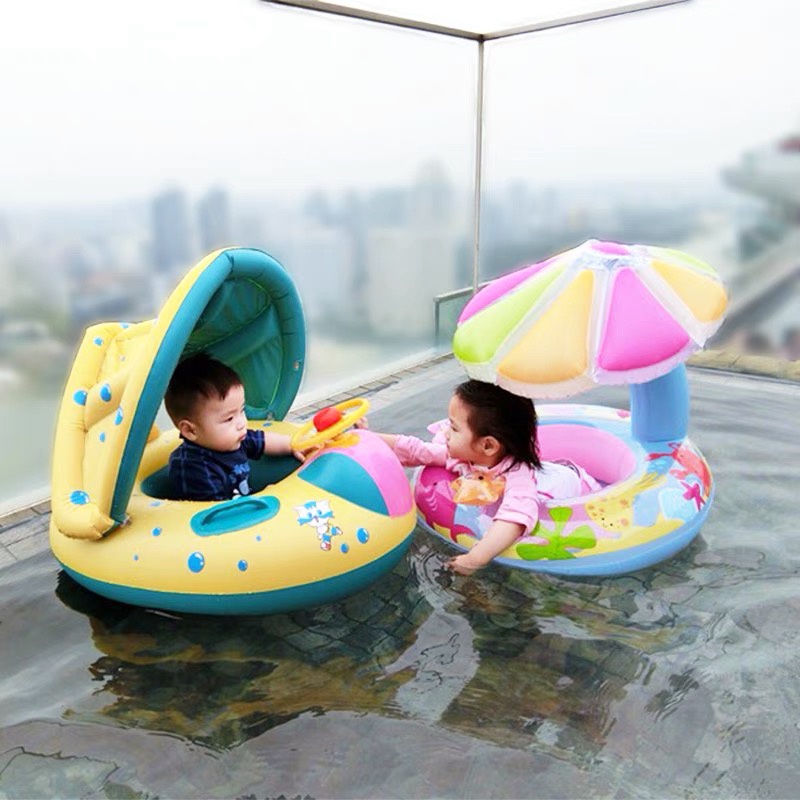 Boia Infantil Inflável com Cobertura Bote para Bebê e Criança na Piscina