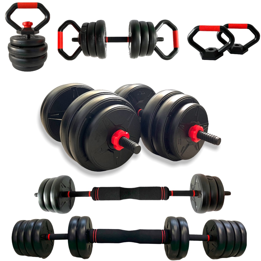 20kg Kit 6 Em 1 Musculação Halteres Anilhas Barras Kettlebell Ajustáveis Academia Treino em Casa Equipamento Fitness