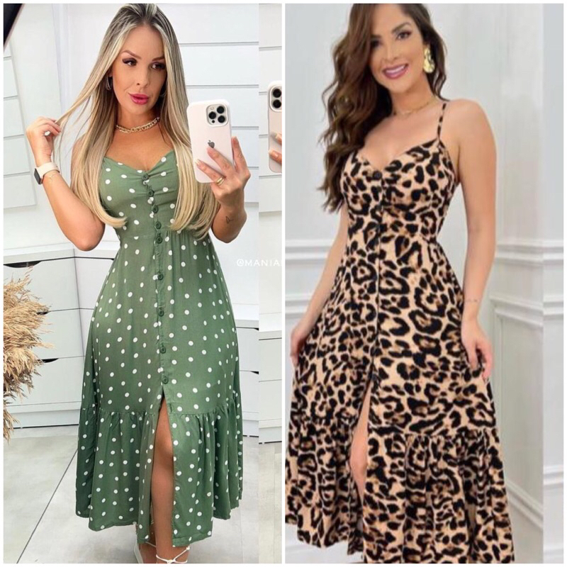 Vestido Longo Feminino Com Botão E Babado Com Bojo Alcinha Ajustável Feminino
