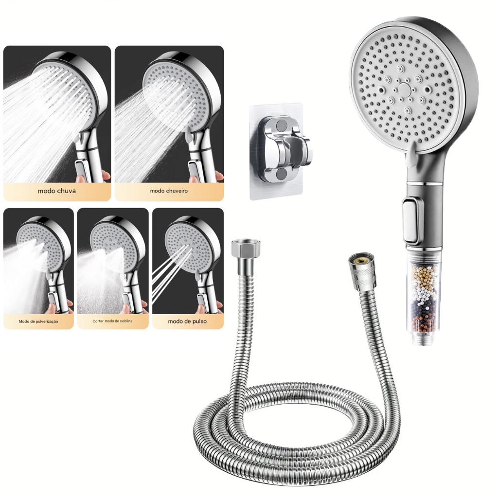 Cabeça de Chuveiro de Íons Negativos e Pressurizados para Banho e Torneira + Mangueira de 1.5M
