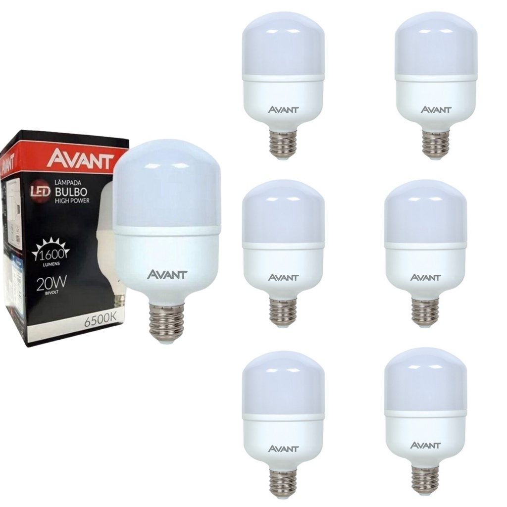Kit 6 Lâmpadas Led Bulbo 20w Branco Frio 6500K Bivolt Econômica Avant Bivolt Bocal E27 Pack Com 6 Lâmpadas Galpão Loja Luz Forte